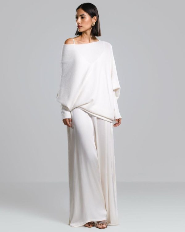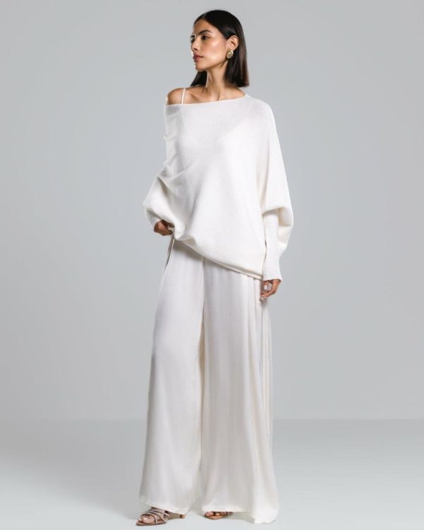 Open weave stitching at key stretch points ensures comfort and texture, while the wool-free knit is cut asymmetrically for a drape that falls fluidly in all the right places. Dress it up with your favourite satins, or level up your laid-back look with knitted trousers. This fluid design offers endless styling possibilities, making it your go-to for luxe layering.