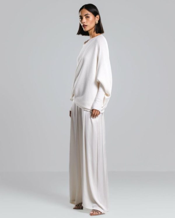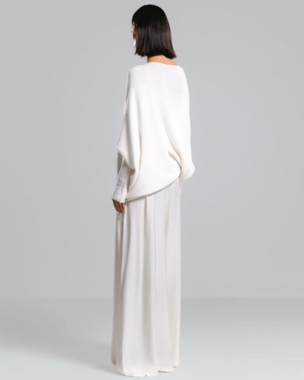 Putting an unexpected twist on classic knitwear, this sweater strikes the perfect balance between elegance and ease. Versatile and flattering, its voluminous design is complemented by slim, fitted sleeves, offering a chic contrast.