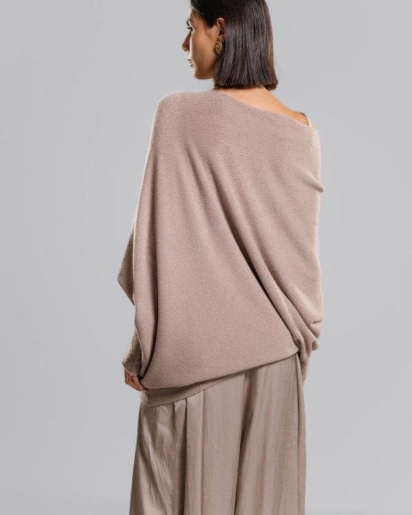 Putting an unexpected twist on classic knitwear, this sweater strikes the perfect balance between elegance and ease. Versatile and flattering, its voluminous design is complemented by slim, fitted sleeves, offering a chic contrast.