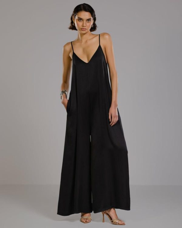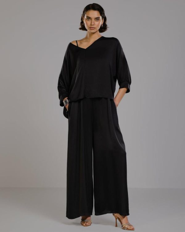 Women JAKI Asymmetric Sweaters | Audrey Satin Jumpsuit | Black
