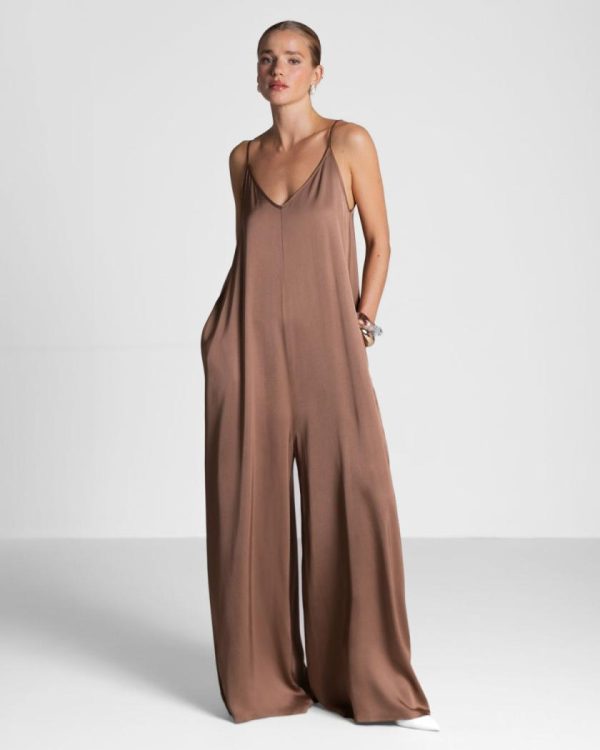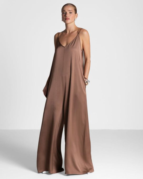 Slip into this silky number, and you’ve got relaxed refinement in one sleek package. Featuring adjustable straps for a custom fit, this piece combines luxe style with effortless comfort. The voluminous silhouette drapes beautifully, while side pockets bring laid-back charm. Our soft satin material feels incredible on skin, and has the perfect sheen. Coming in rich, wearable colour ways, this jumpsuit exudes an understated elegance worthy of the inevitable compliments.