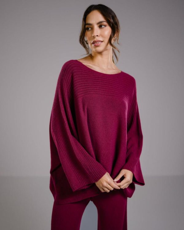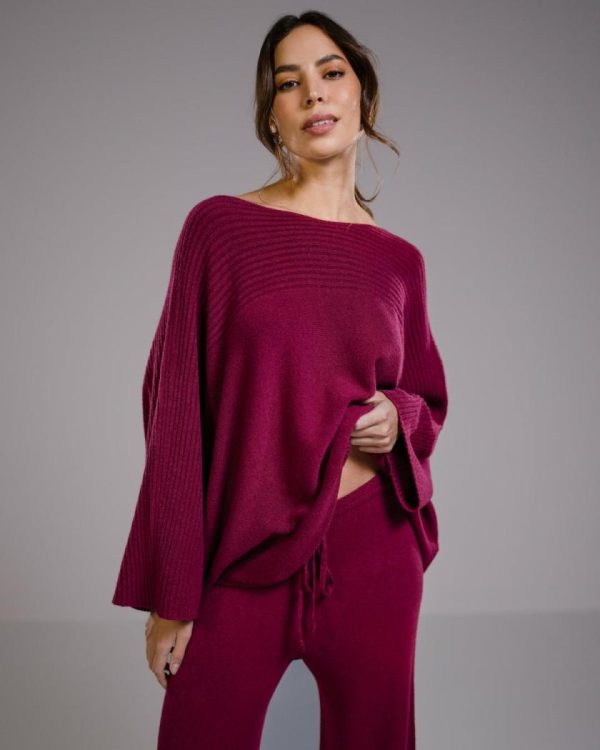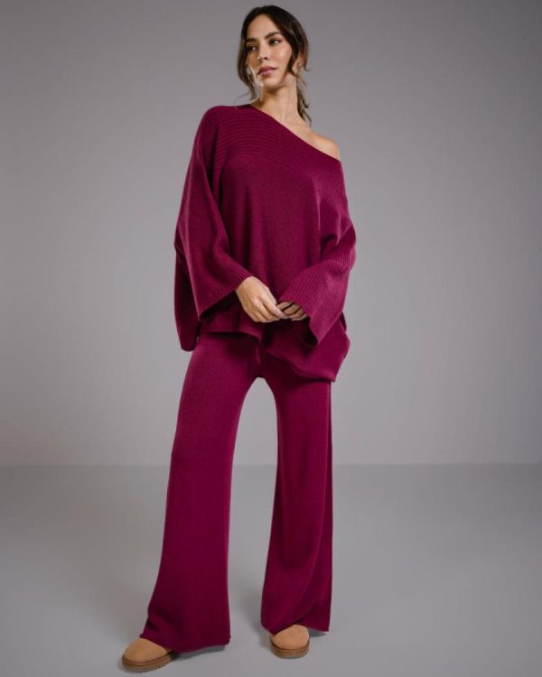 Women JAKI Knitted Sets | Ribbed Sweater | Burgundy