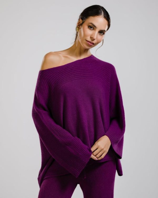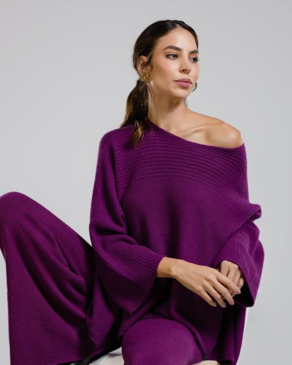 Women JAKI Knitted Sets | Ribbed Sweater | Violet