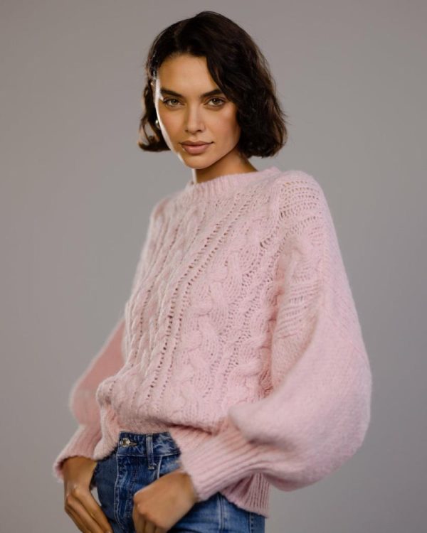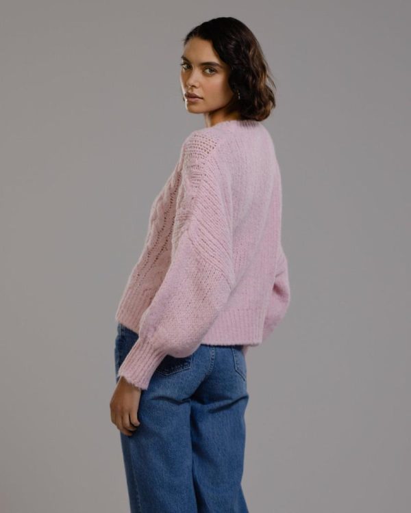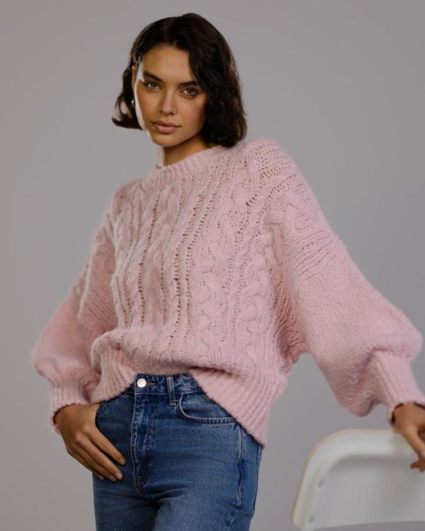 Women JAKI Knitwear | Heather Cable Sweater | Light Pink