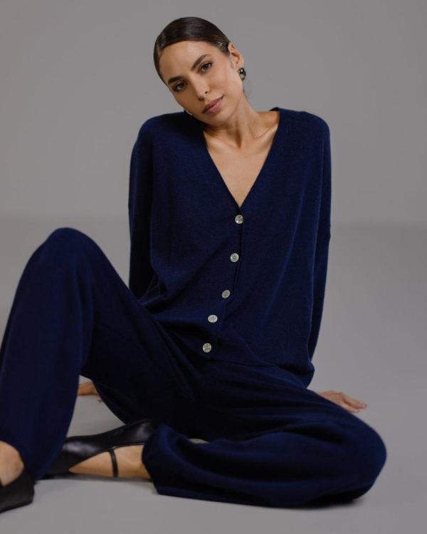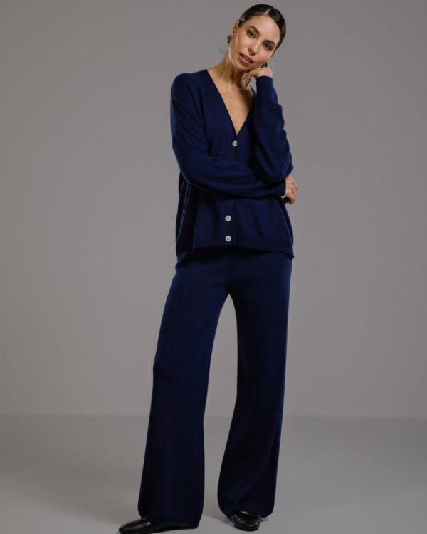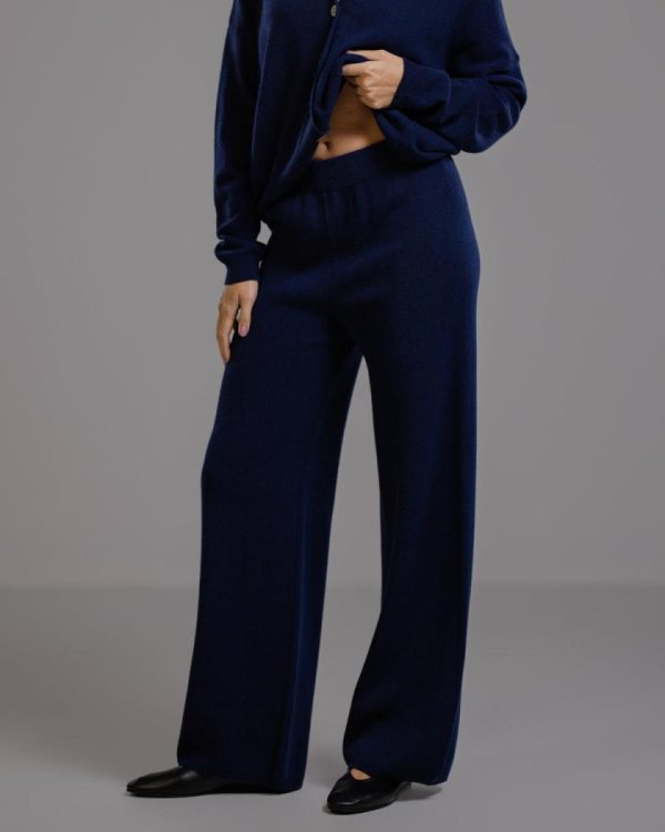 Women JAKI Knitwear | Isla Elastic Waist Pants | Navy | Cashmere-Wool Blend