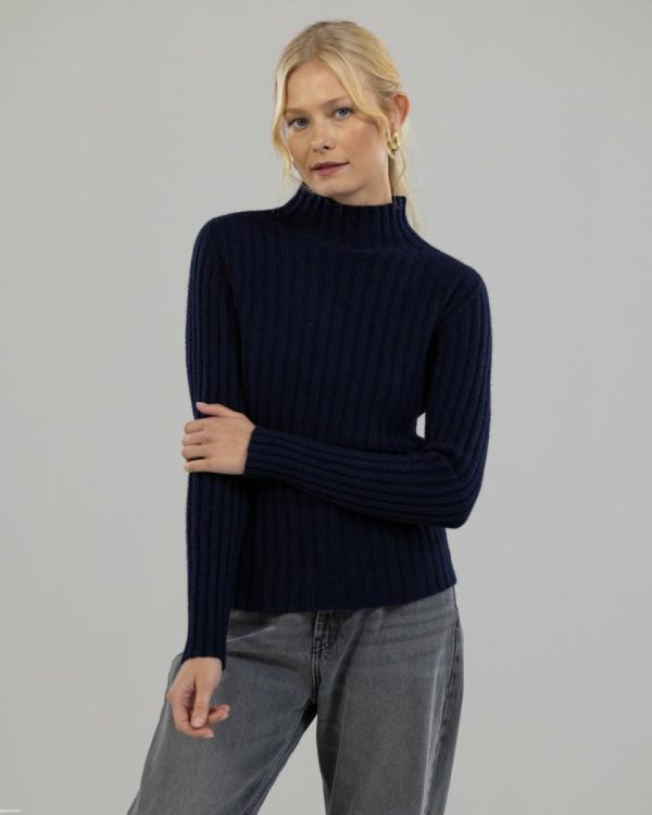 Women JAKI Knitwear | NEW | High Neck Fitted Sweater | Navy quantity