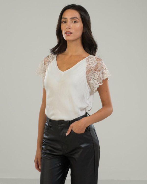 Women JAKI Satins & Knits | Allegra Draped Satin Top | White