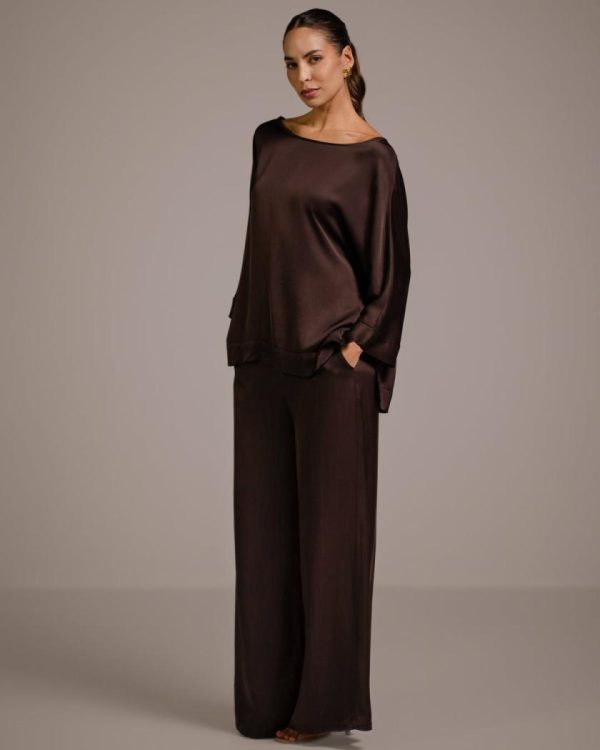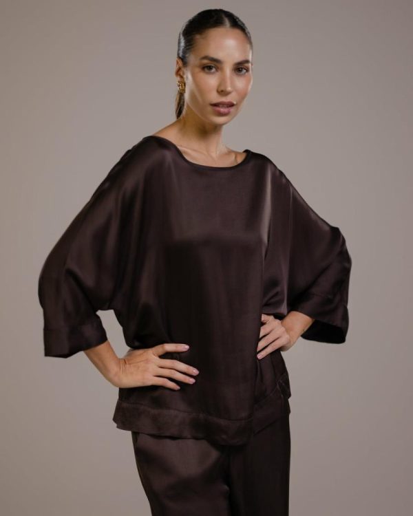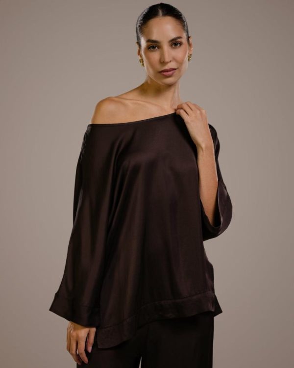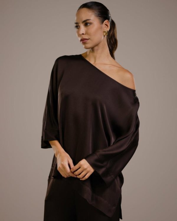 Women JAKI Silks & Satins | Allegra Draped Satin Top | Black