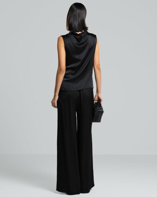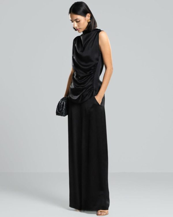 Crafted in Italy from luxurious mid-weight satin. Featuring pin-tucked detailing on one shoulder and side, creating a beautifully gathered effect that enhances the fabric’s lustrous sheen. Sleeveless, with a slim-stretch fit and a high neckline, it exudes modern sophistication. Made to be worn with our luxe-satin skirts or trousers for a polished look.