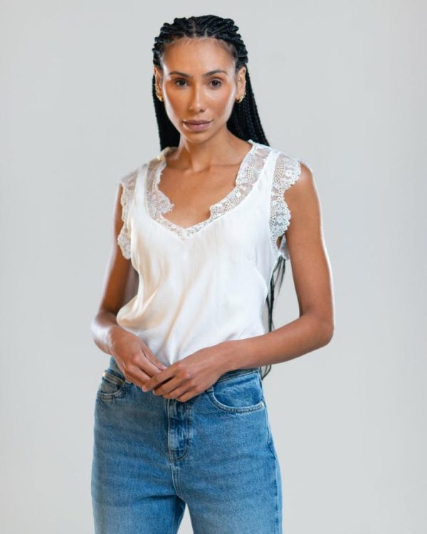 Women JAKI Satins & Knits | Allegra Draped Satin Top | White